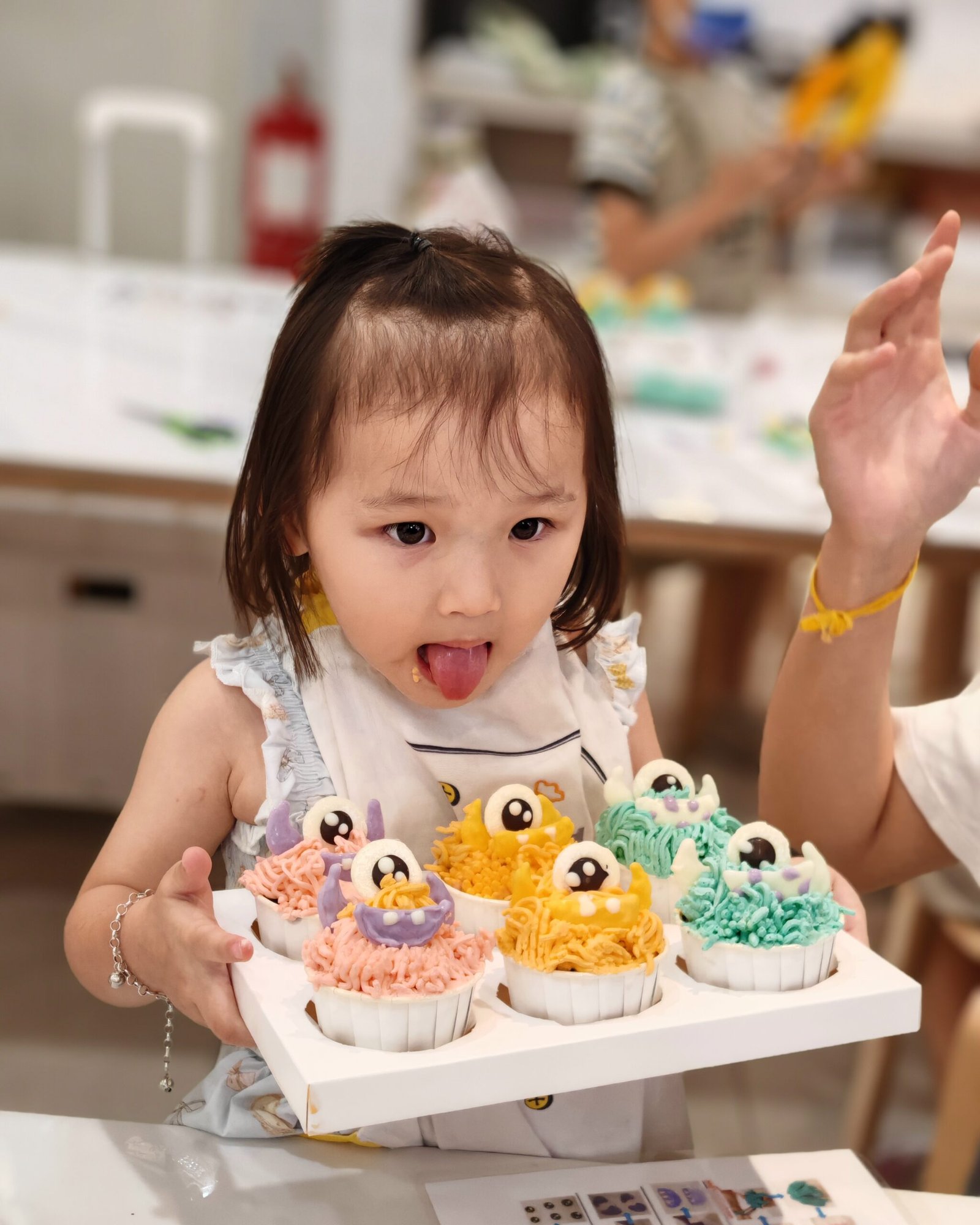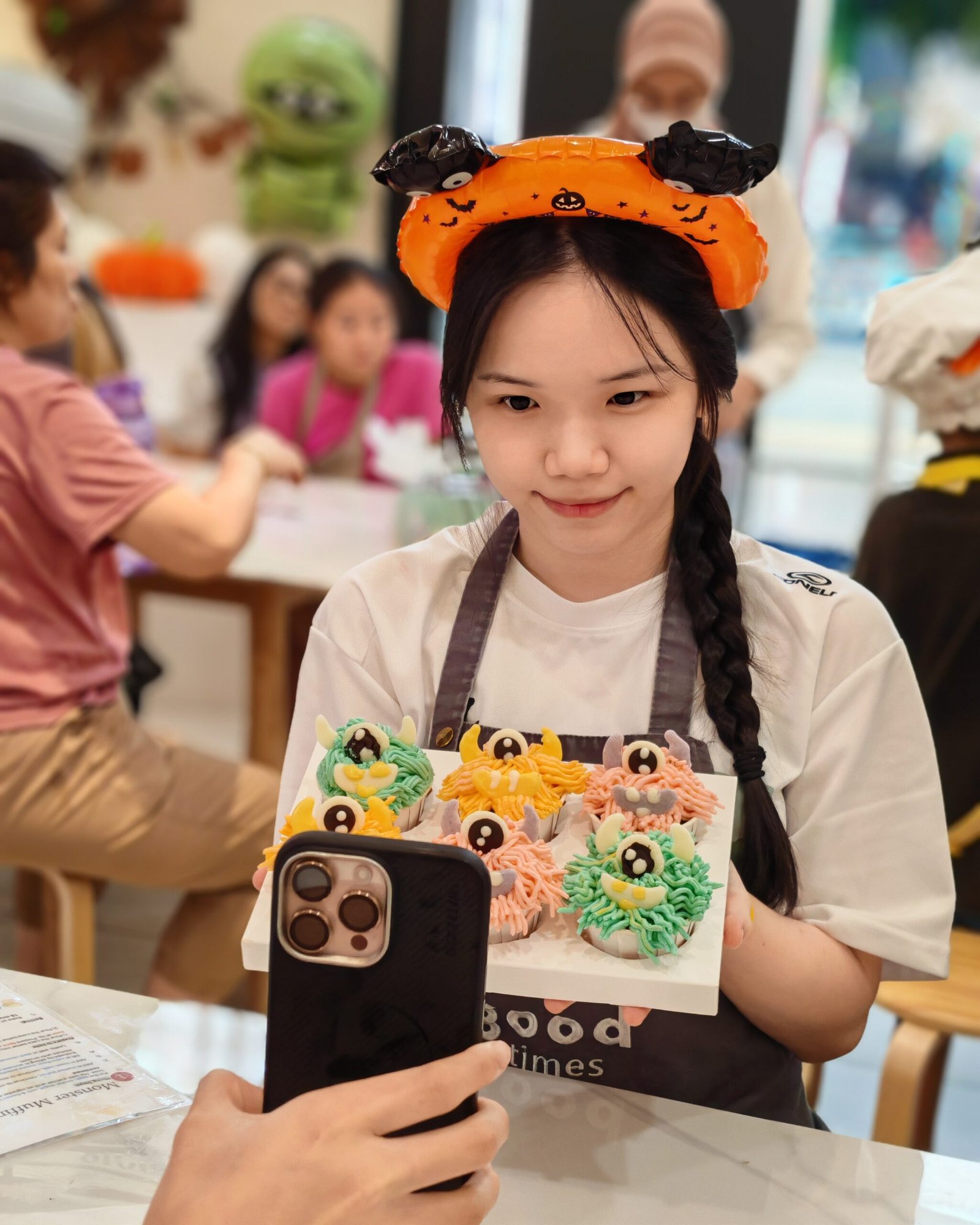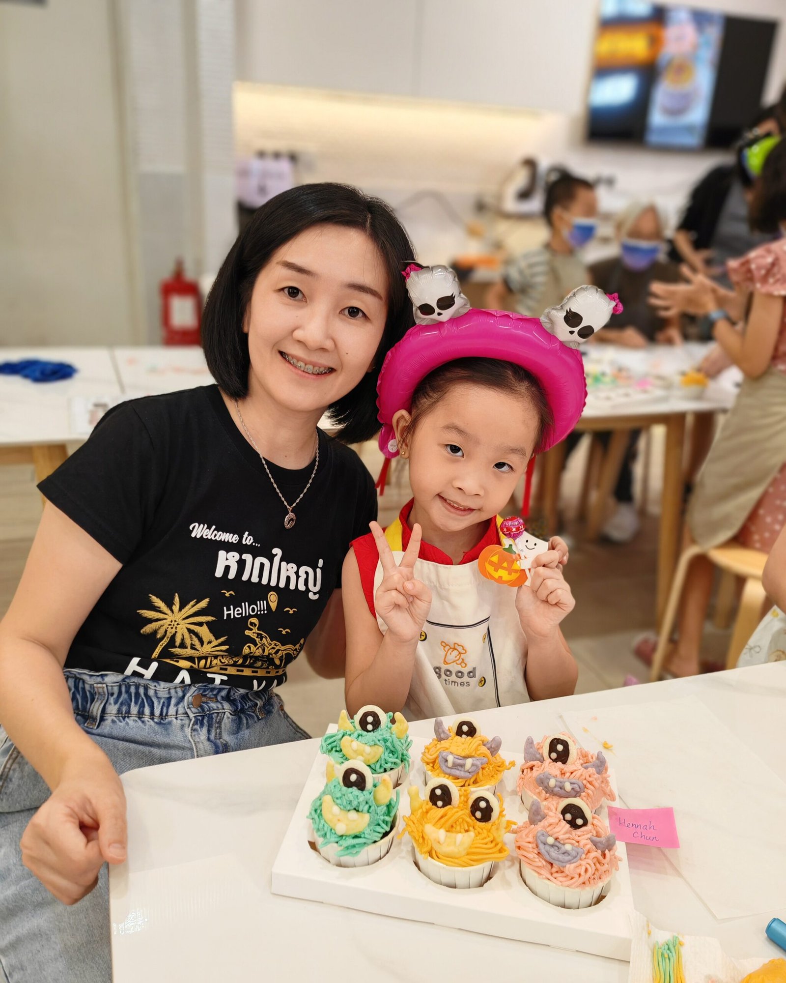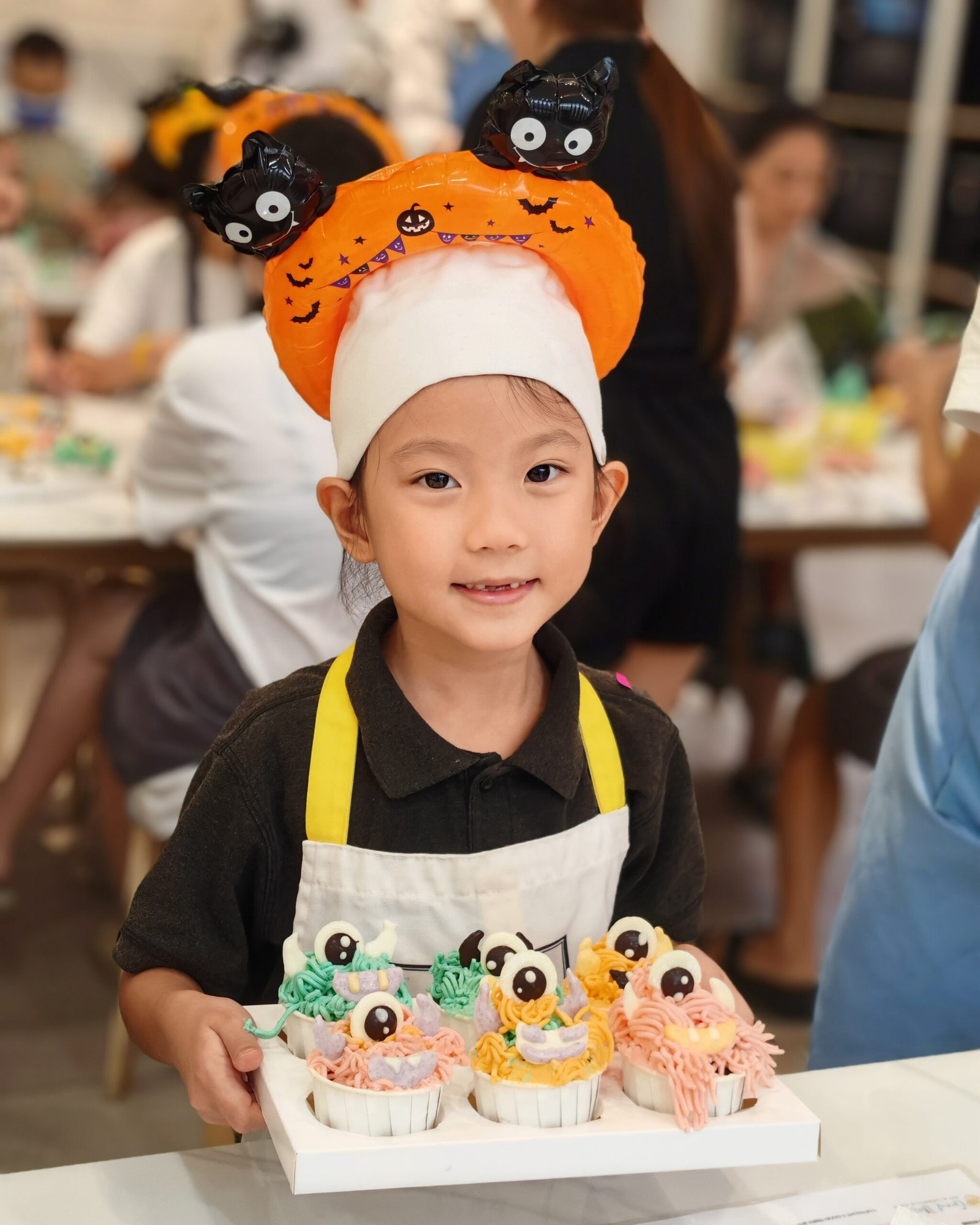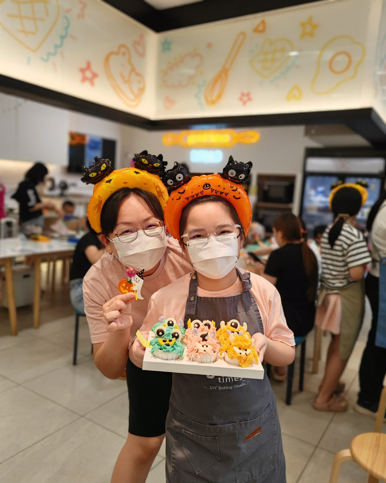 From piping colorful buttercream “monster hair” to decorating with edible eyes and horns, every baker added their own creative twist. The studio was filled with laughter, frosting, and Halloween cheer — with adorable costumes and ghostly decorations completing the festive vibe.